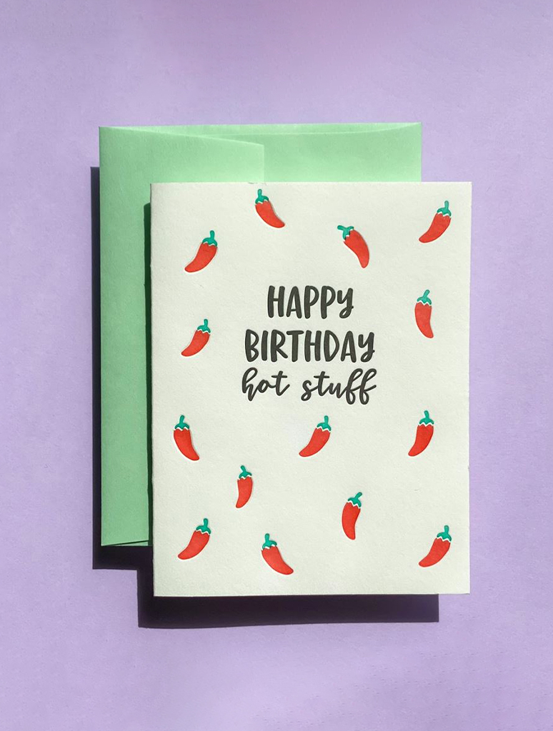 Happy Birthday Hot Stuff Letterpress Birthday Card