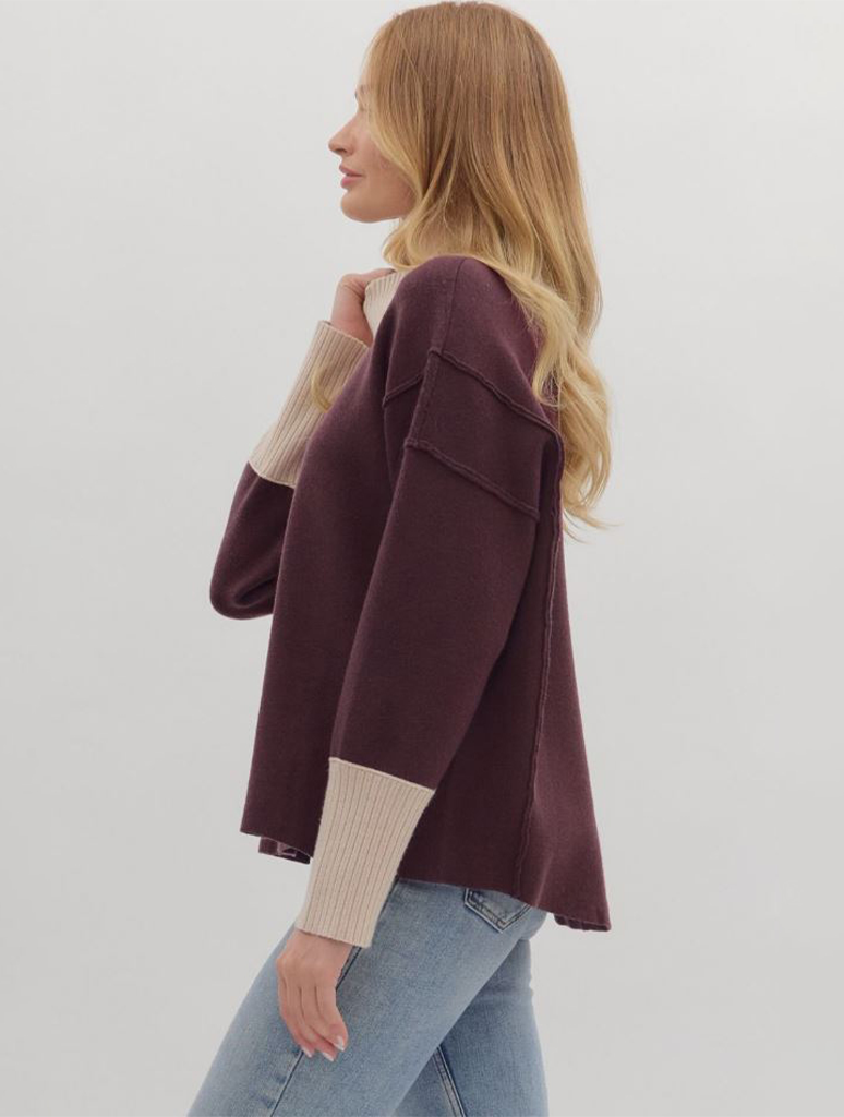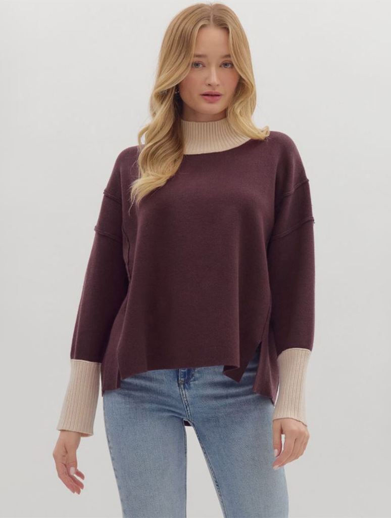 Long Sleeve Knit Pullover With Contrast Ribbing