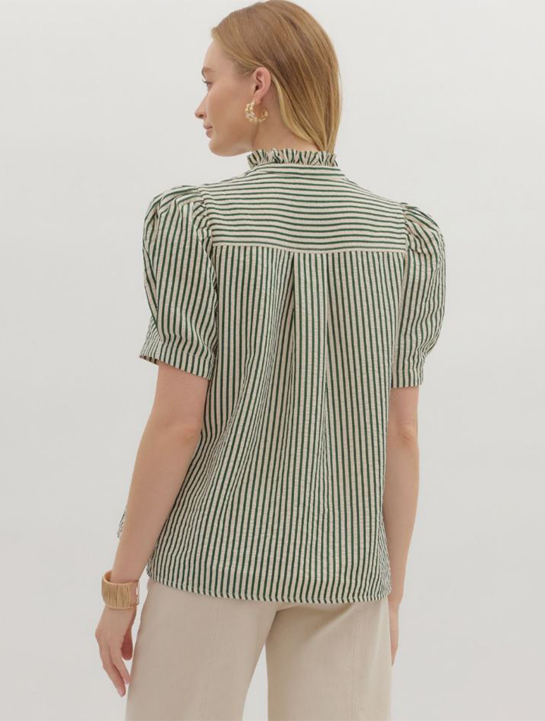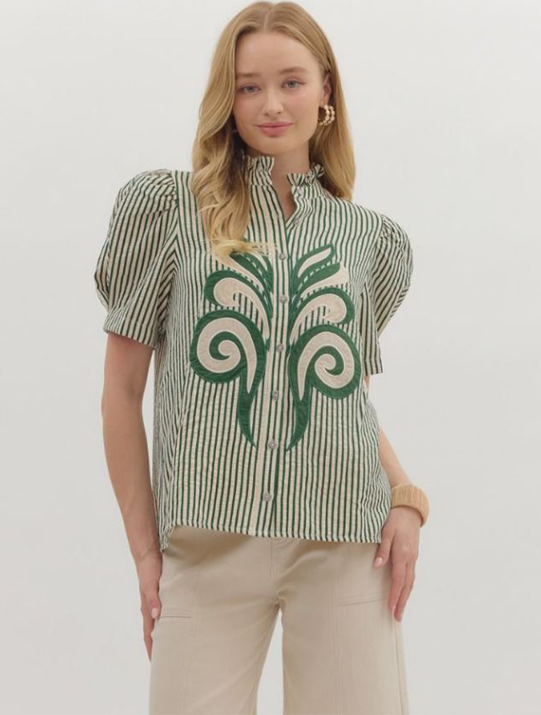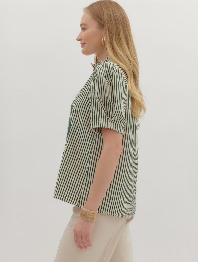Stripe Short Sleeve Blouse With Embroidered Detailing
