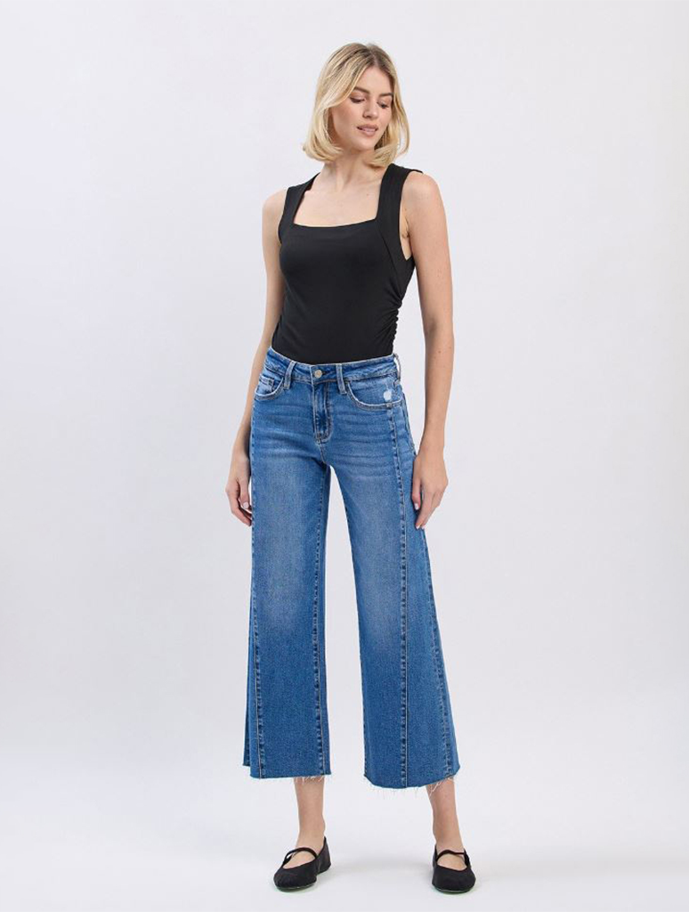 Vervet High Rise Raw Hem Twist Wide Jeans
